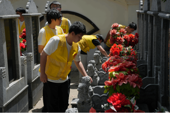 丰碑无言,精神长存。实践团走向潘黄烈士陵园,站在潘黄烈士陵园的入口,松柏苍翠如列阵,微风拂过,枝叶轻响似在诉说过往。踏入陵园,革命烈士纪念碑矗立在园区中央,碑身“革命烈士永垂不朽”八个鎏金大字,在晨光中熠熠生辉,为这场祭扫仪式铺就了庄严的底色。实践团的成员们为纪念碑敬献花篮,而后肃穆而立,目光注视着纪念碑,仿佛注视着他们的背影,耳边聆听陵园工作人员讲述革命烈士在抗日战争和解放战争中英勇献身的感人事迹,听着他们为了革命为了人民献身的故事,强烈的感动萦绕心中,他们的红色精神也将永远存在于同学们的心中,激励着他们。
