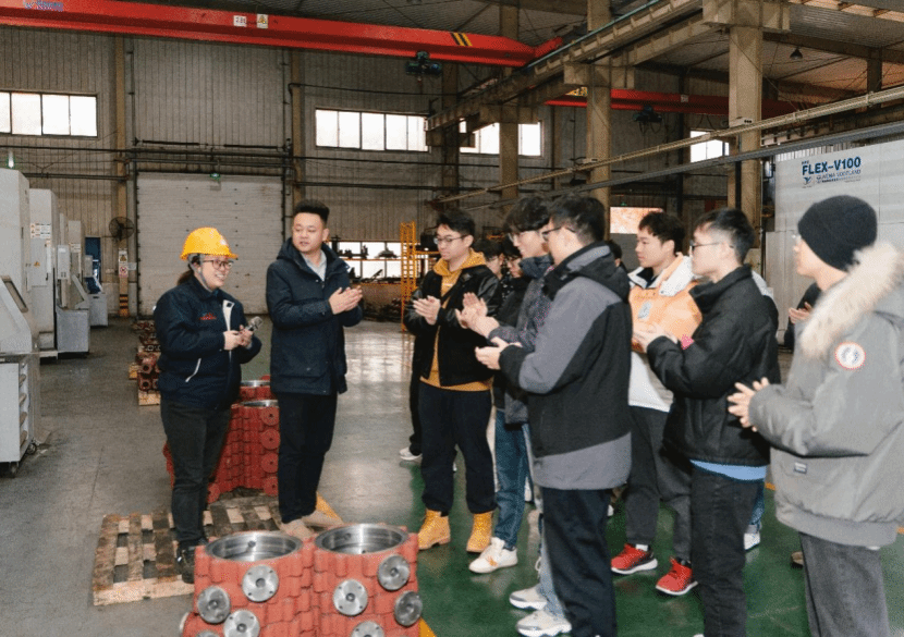 随后研究生一行人赴江苏圣泰阀门有限公司开展实践教学。在江苏圣泰阀门投产的全新智能制造车间里,工程师结合阀门制造的全流程工序和工艺,将智能物流系统、机械手上下料系统、智能加工中心、智慧天车输送系统、码垛中心等全产线智能装备与系统集成分别进行了原理讲解和操作实践。随后,研究生就智能装备控制及系统集成过程中的一些疑问与现场工程师展开互动交流,部分研究生也咨询了企业对人才的需求情况和薪资待遇等问题。