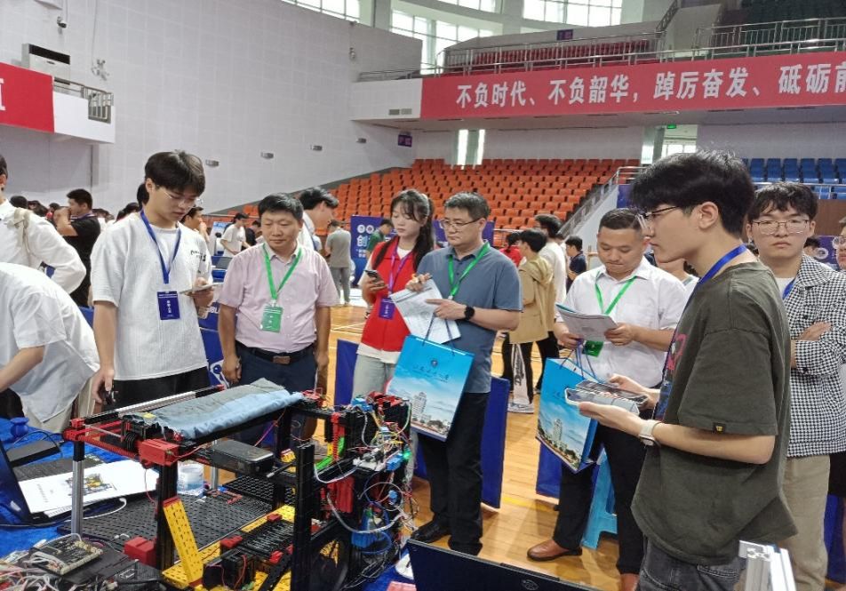 自今年6月份以来,17支参赛队伍便投入到备赛之中。进入暑假后,各队指导教师和员工选择牺牲假期时间,留校备赛,每天泡在办公室和实验室,反复修改、打磨参赛作品。7月12日,参赛队员到达江苏海洋大学报到,并于7月13日参加比赛。参赛团队将作品摆放在各自的区域,通过巡展、向评委嘉宾介绍、现场ppt答辩等环节,与省内其他院校同台竞技。