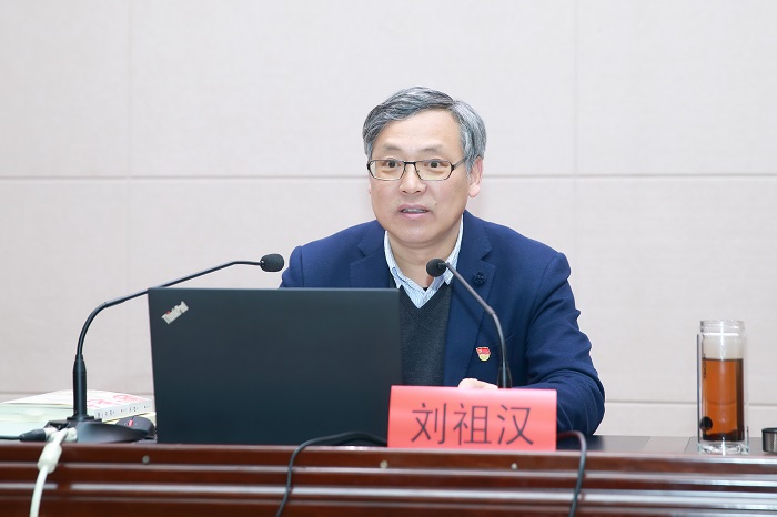 刘祖汉希望全校青年员工深刻理解党史学习教育的六大重点目标,做红色精神的传承者、孜孜不倦的求学者、道德风尚的引领者和起而行之的奋斗者,携手并肩、攻坚克难,在真刀真枪实干中成就一番事业。