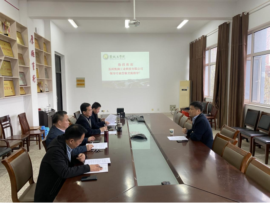 3月31日下午,在机械馆A223会议室,苏州凯润工业科技有限公司董事长肖斌专程来公司,进行交流,洽谈合作事宜。经理周海、党委书记孙雷、副书记秦卫兵、副经理查文炜、周临震等参加交流。
