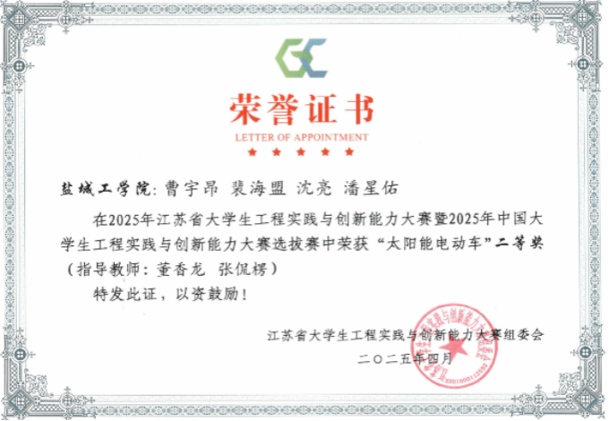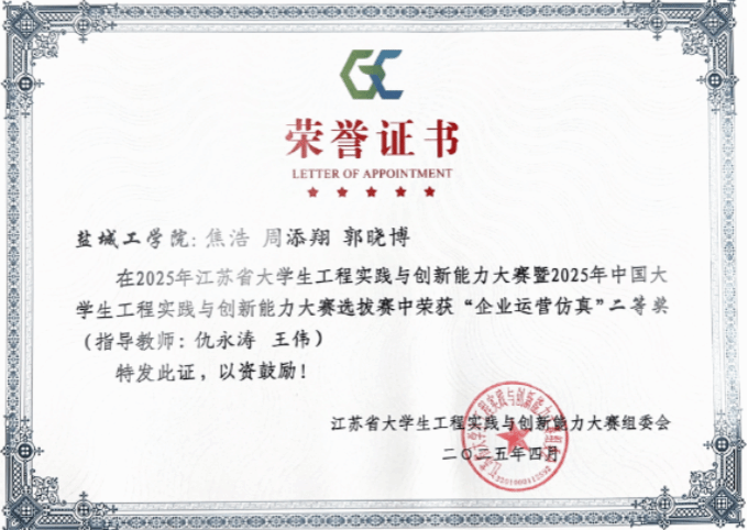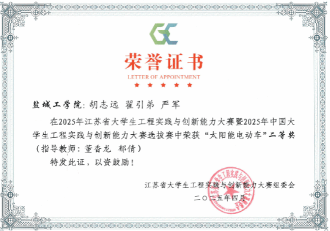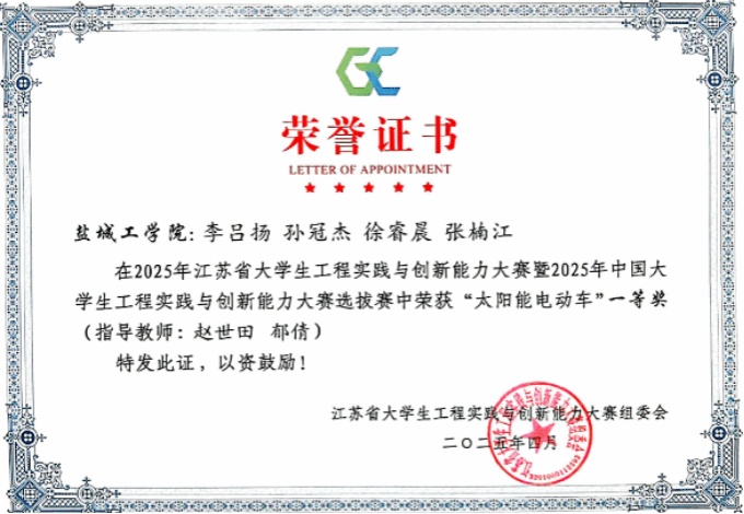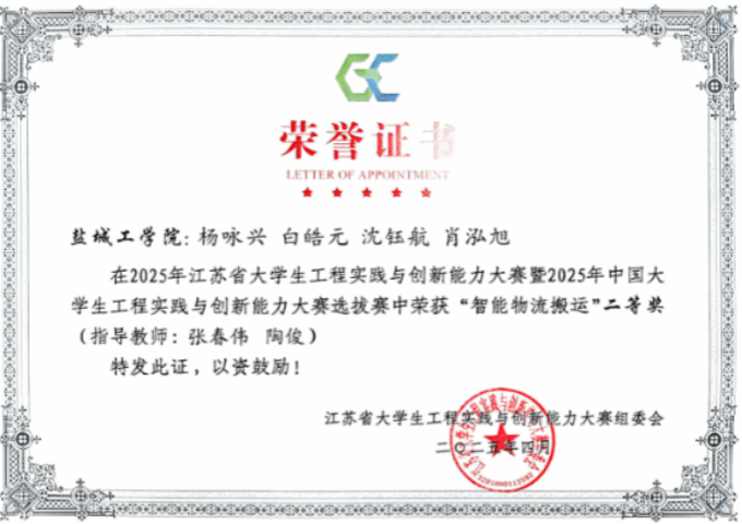 4 月 18 日至 20 日,2025 年江苏省老员工工程实践与创新能力大赛在江南大学蠡湖校区落下帷幕。williamhill英国官网选派的 5 支参赛队伍以1 项省一等奖、4 项省二等奖全部获奖。其中,赵世田、郁倩老师团队指导的作品斩获太阳能赛道一等奖;张春伟、董香龙老师团队在智能物流搬运赛道连夺两项二等奖;仇永涛老师团队的作品获企业运营仿真赛道二等奖,从而实现多赛道创新突破。