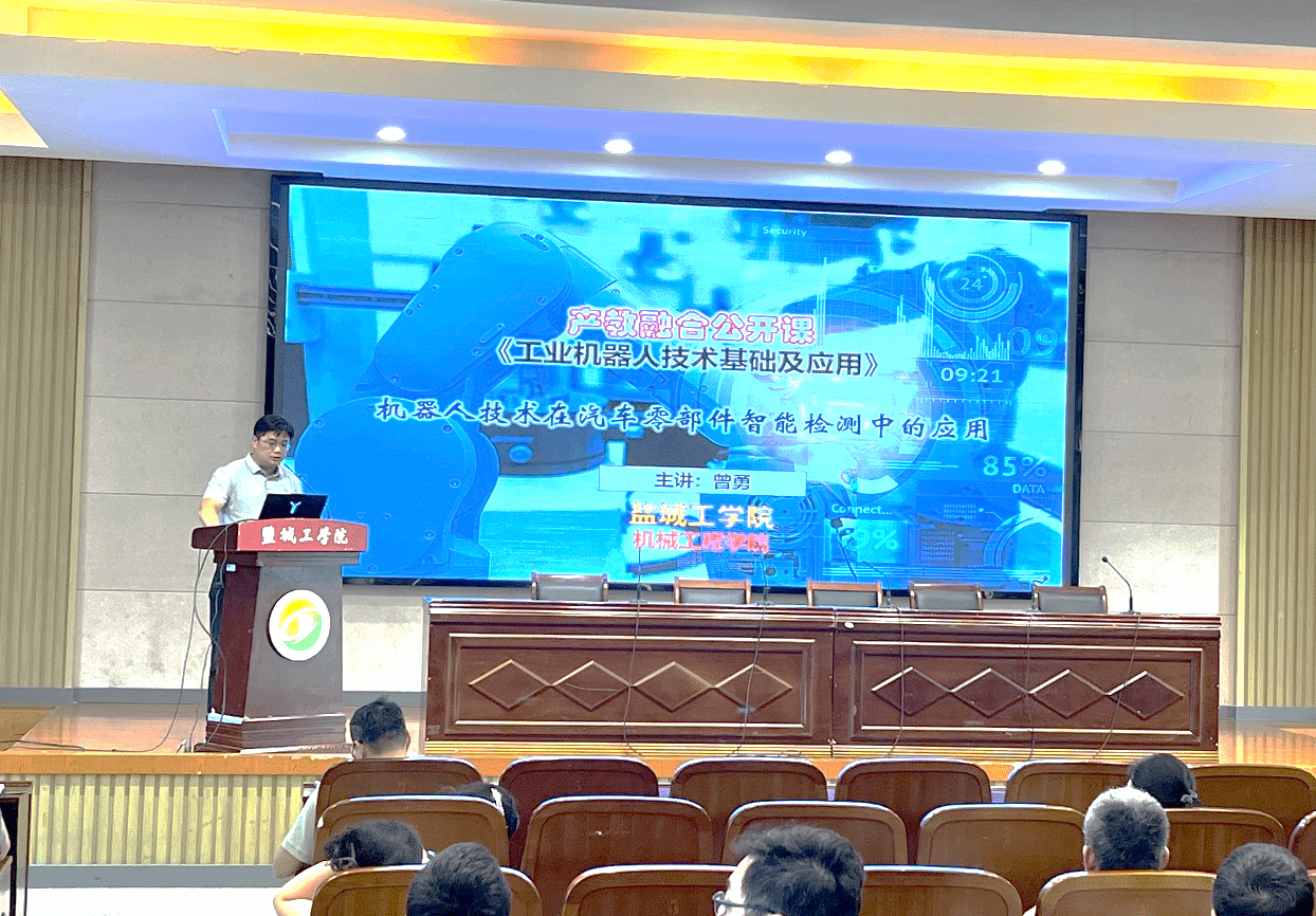 在《工业机器人技术基础及应用》产教融合公开课上,曾勇教授紧跟行业发展趋势,围绕“机器人在汽车零部件智能检测中的应用”进行讲解,聚焦课堂教学如何与企业实际需求深度融合。他重点介绍了车门内拉手缺陷检测用机器人系统的设计思路与方案,从企业技术需求、应用场景分析、装备集成要求及系统兼容性与经济性考量等方面,系统讲解了完整的工程设计过程,并在讲解过程中有机融入了工业机器人岗位技能要求和行业发展趋势。课程内容新颖,紧贴产业前沿,案例详实具体。