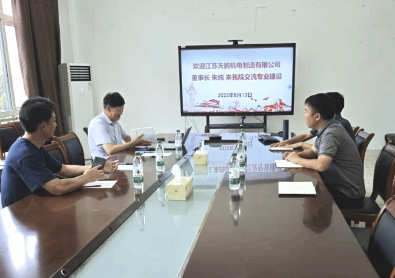 2025年8月13日下午,江苏天鹏机电制造有限公司董事长朱纯一行来访williamhill英国官网。过程装备与控制工程专业系主任张福隆、专业系教师蔡国华、张宁参加座谈。双方围绕过装专业发展、《固体废物处理技术》课程建设及产业人才需求对接等议题进行了深入探讨。
