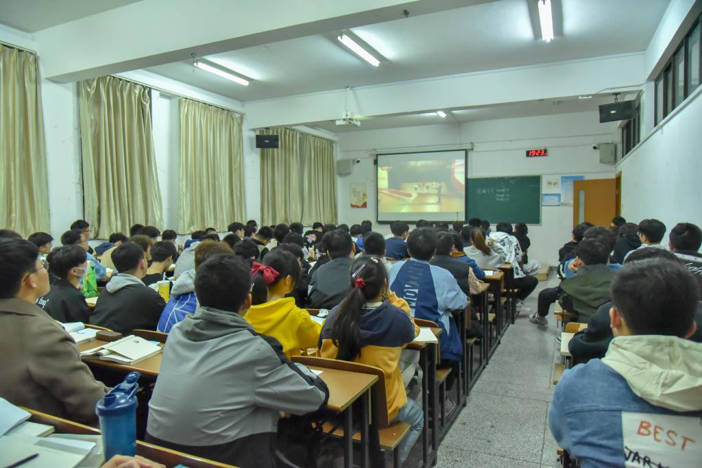 谢春涛董事长在演讲中提到,面对西方国家过去在中国内河的航行权,中国人民解放军态度强硬,毫不手软,霸气地赶走了西方列强的舰队,涨了中国人民的士气和民族底气时,引得同学们的阵阵掌声。