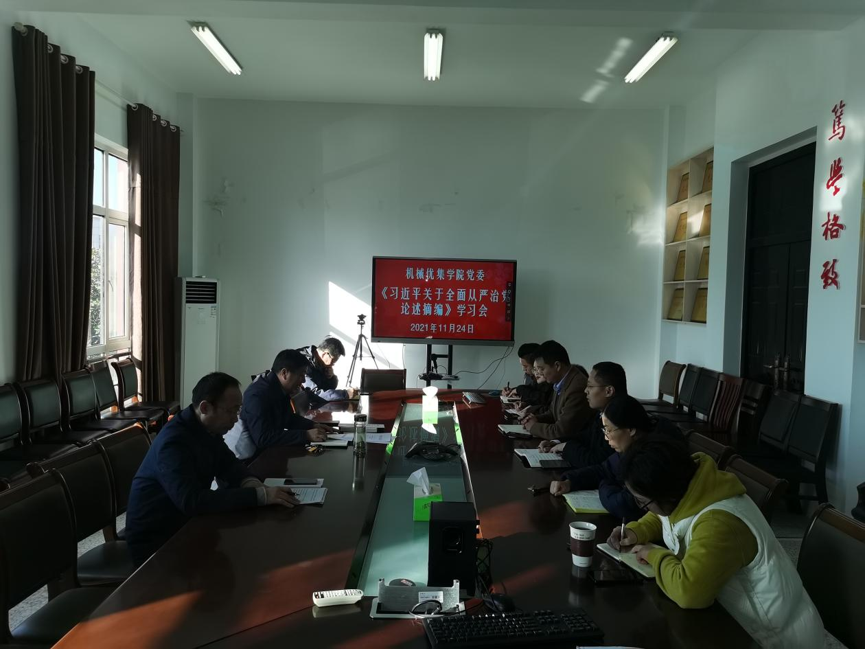 11月24日上午,在机械馆A223会议室,公司党委以“第一议题”形式,专题学习《习近平关于全面从严治党论述摘编》。公司党委书记徐子连主持,公司党委理论学习中心组成员参加。