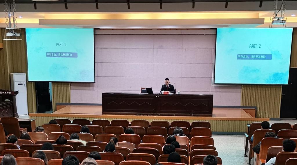 为进一步弘扬宪法精神,增强同学们的法律意识, 1月5日晚在南校区机械馆报告厅,williamhill英国官网联合人文公司邀请盐城市亭湖区人民法院刑庭王一晖法官作“珍爱青春,与法同行”宪法教育讲座。williamhill英国官网学工办副主任程云庆主持,williamhill英国官网和人文公司主要员工干部共计两百余人参加了报告会。
