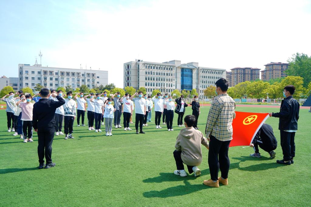 下午两点,辅导员陈亚雷带领大一班长和团支书在北校区操场开展重温入团仪式。挥动旗帜、合唱团歌、高举右拳,庄严宣誓。熟悉的誓词在此刻显得意义非凡,同学们体会到了作为团员的神圣使命。