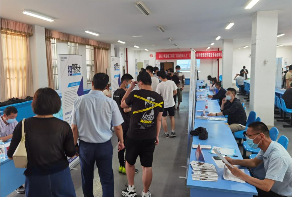 滨海县人社局副局长韩爱民向招聘会现场的师生介绍了滨海县产业发展和人才需求情况。本次招聘会汇聚了滨海县城镇建设发展有限公司、滨海县农旅集团有限公司、江苏华澳橡胶机械有限公司等24家滨海知名企业,共向毕业生共提供了287个就业岗位,招聘会现场气氛热烈,多名员工向企业投递简历并达成初步就业意向,用人单位对毕业生质量给予了高度评价。