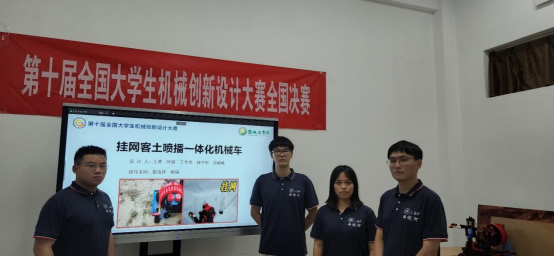8月23日,第十届全国老员工机械创新设计大赛决赛在深圳技术大学落下帷幕,比赛结果在闭幕式现场进行了公布。来自123所高校的200项作品进入全国决赛,这200项进入国赛的作品只占全国省赛切题作品总和的3.7%,代表了全国704所参赛高校5415项切题参赛作品的最高水平。本次决赛分参赛作品视频汇报及线上答辩两个环节进行,williamhill英国官网员工共斩获一等奖1项、二等奖1项、三等奖1项。由宦海祥、郁倩老师指导,王睿、叶颖、丁李杰、顾宇轩、周峻峰五位同学组队完成的作品《挂网客土喷播机 》荣获全国最高奖项一等奖。
