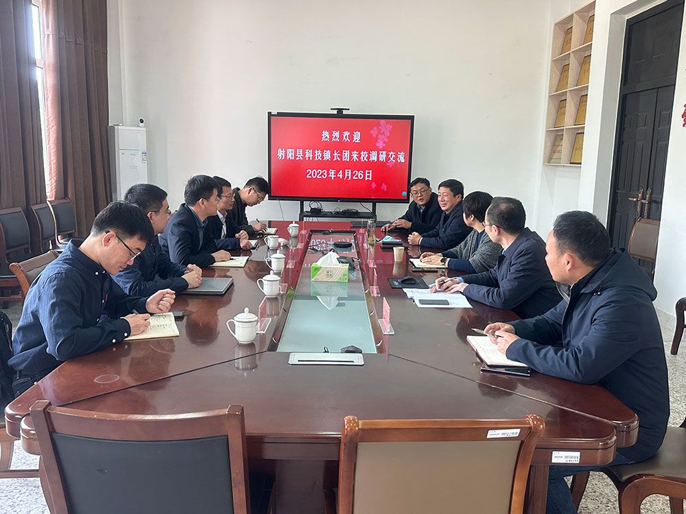 4月26日下午, 射阳县人民政府党组成员、科技镇长团团长王延杰一行7人来校调研交流校地合作相关事宜。公司党委常委、组织部部长邢晓平,williamhill英国官网经理周临震、党委书记徐子连接待射阳县科技镇长团一行,在机械工程馆A223会议室举行了合作交流会。