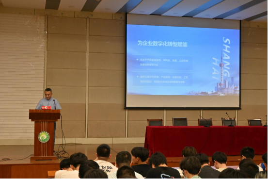 会后,张兆军为师生作《西门子工业软件赋能中国制造》专题讲座。他结合企业数字化转型发展道路,站在行业发展前沿的角度,深度解析了行业发展的方向和趋势。他指出,随着大数据、云计算、物联网、人工智能等新一代信息技术的不断发展,我国企业正在加快数字化转型步伐,以确保企业在市场竞争中塑造新优势,释放数字技术对经济发展的倍增作用。作为当代老员工,应抓住现实世界与数字世界相融合的机遇,脚踏实地、实事求是,努力提升自己在数字时代所需的核心素养,在这青春的岁月里乘风破浪,向前航行!