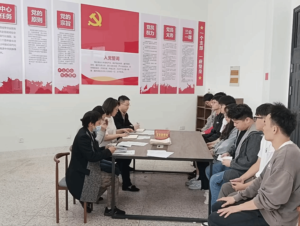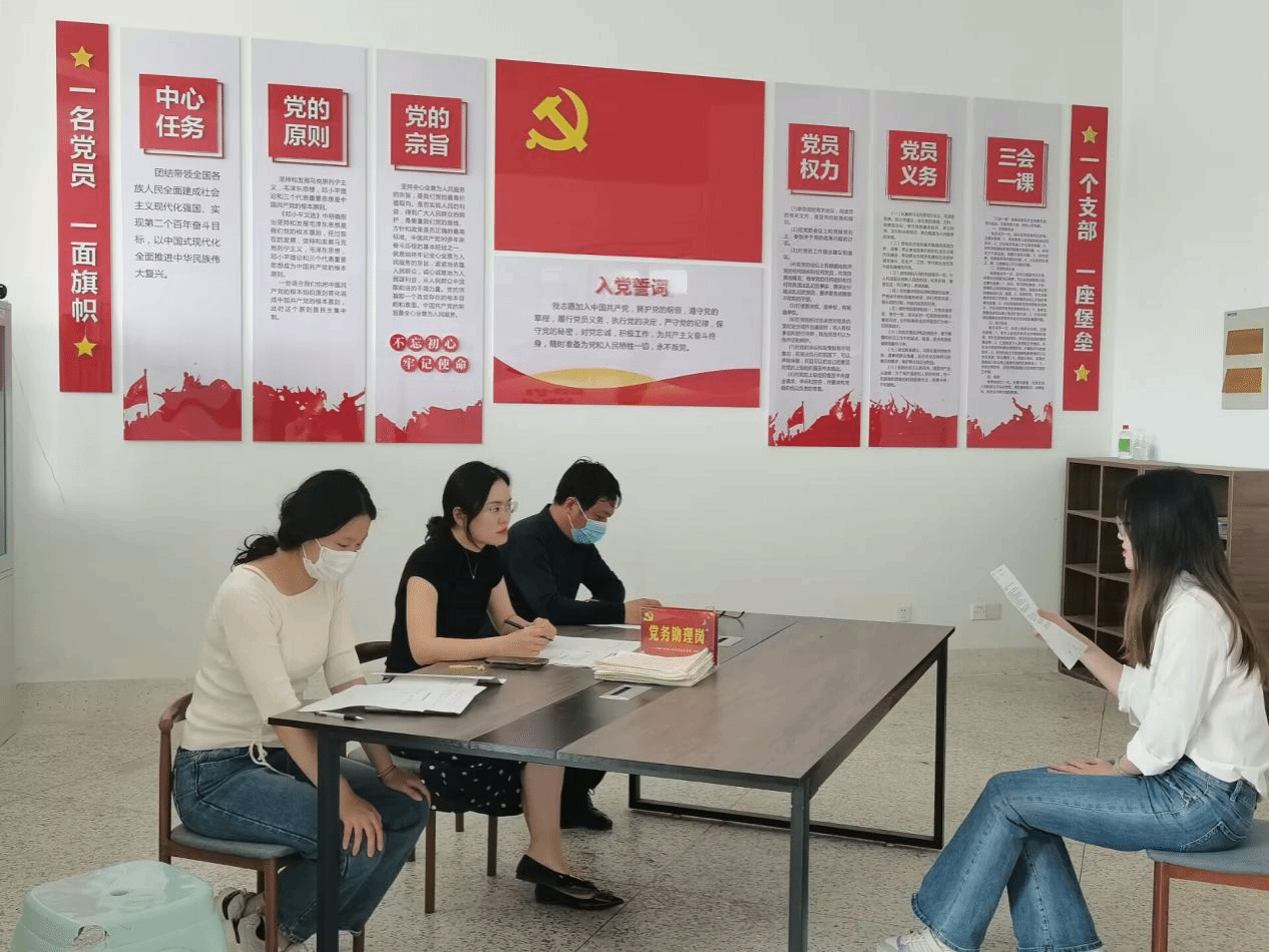 此次转正答辩分为个人陈述、现场问答以及评议三个环节。预备党员围绕预备期内的理论学习、工作表现、实践锻炼等方面进行了个人陈述。在现场问答环节,答辩评委围绕坚定党员理想信念、发挥党员先进性、关注时事热点等方面进行了提问。评议环节,答辩评委根据答辩人的作答情况进行了评议,参加答辩的预备党员均以较好的政治素养和预备期综合表现通过答辩。
