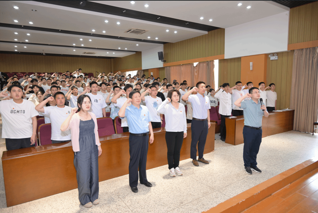 会上,学工办副主任程云庆介绍了公司党员发展情况,主席台领导老师为新发展党员代表佩戴党员徽章,B材控201班马竟成作为新发展党员代表作表态发言。会上还组织了新党员入党宣誓和老党员重温入党誓词。