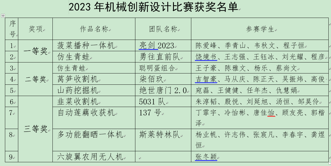2023年11月8日,机械创新设计大赛校选赛在机械馆B210举办,共有9个团队约45名入围选手,涵盖了机械设计制造及其自动化、机械电子工程、智能制造、过程控制与装备、G机械等专业。邀请了宦海祥、刘道标、吴卫东、李亮、郁倩、洪捐、袁铁军、张春伟具有丰富大赛指导经验的教师担任评委,大赛最终评选出一等奖2项、二等奖3项、三等奖4项。