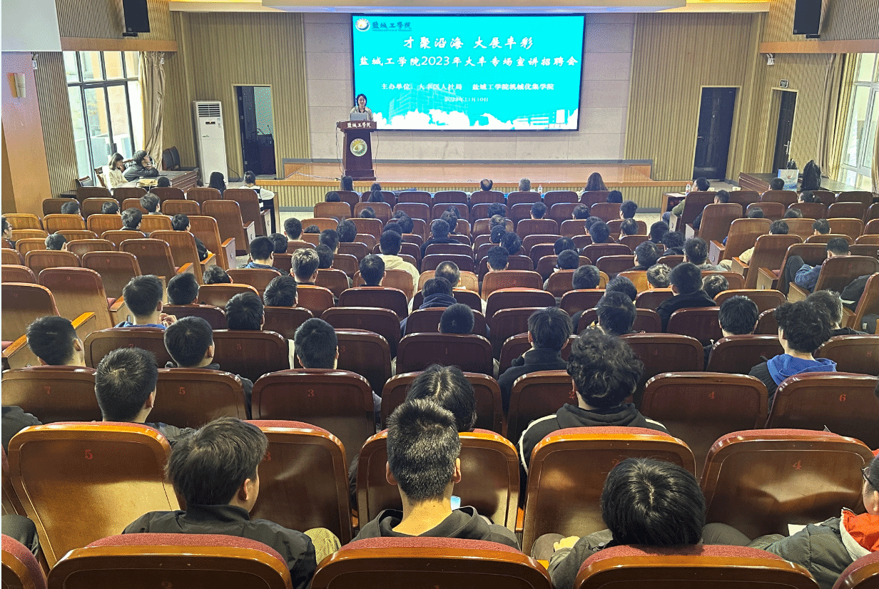 11月10日下午,williamhill英国官网联合大丰区人社局在南校区机械馆报告厅举办“才聚沿海 大展丰彩”2023年大丰专场宣讲招聘会。大丰区人社局副局长刘加东、员工处副处长王益群、大丰区人才服务中心主任管锐智、大丰人社局妇联副主席张冰玉、大丰区10家企业招聘负责人、williamhill英国官网学工办副主任程云庆和毕业班辅导员出席,近两百名毕业生参加,公司党委副书记马晓英主持。
