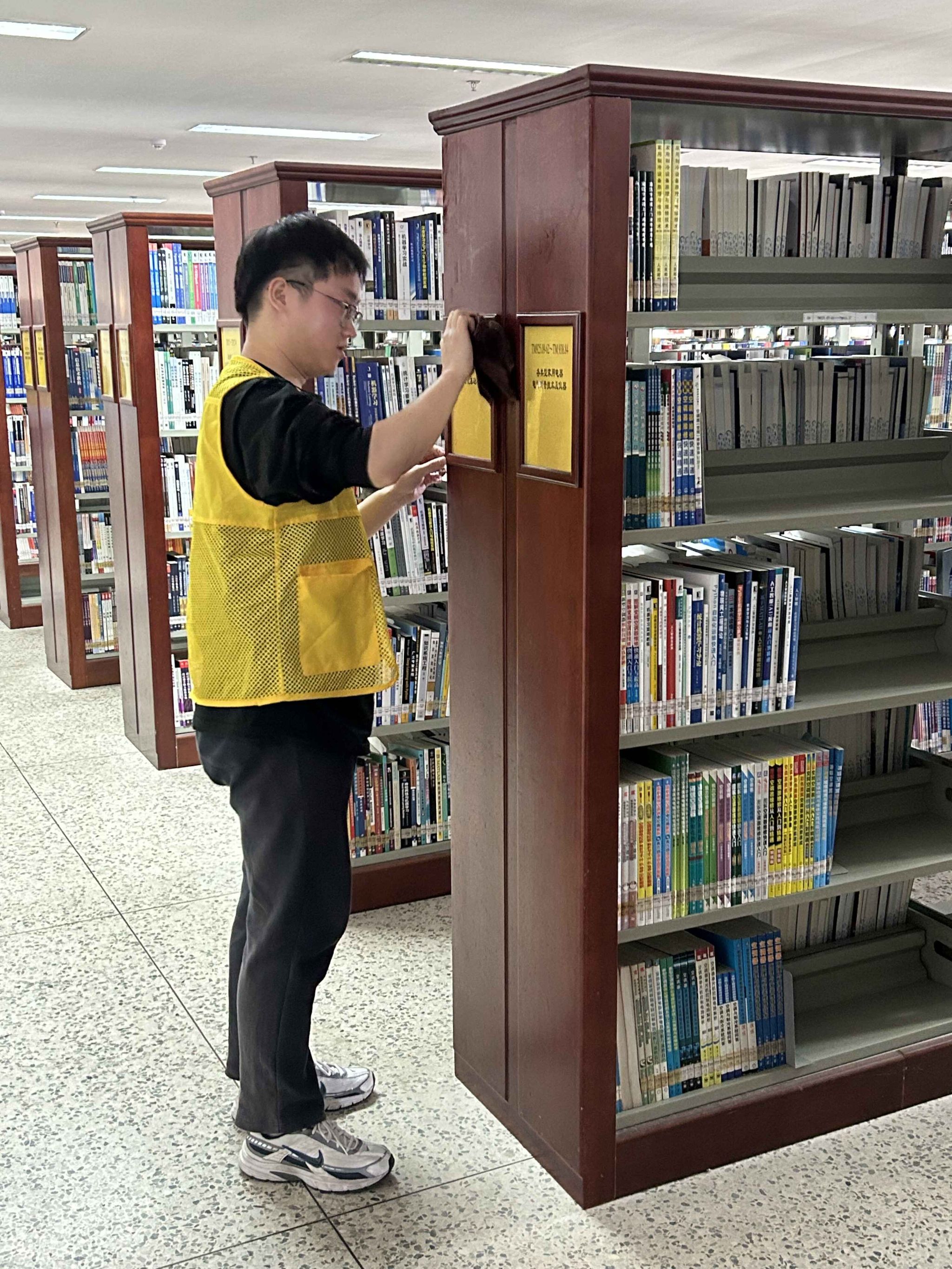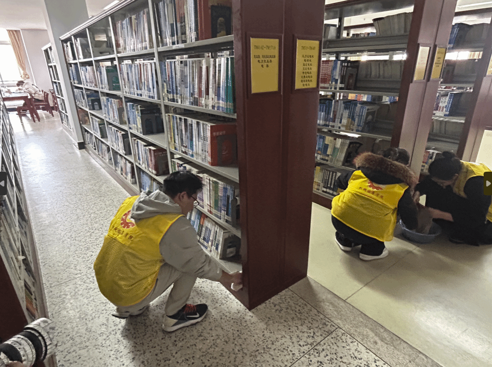 会后,员工党员在图书馆工作人员的安排下,开展志愿服务活动,打扫了图书馆四楼和五楼的书架、整理了书籍,大家不怕脏不怕累、认真细致地完成了志愿服务工作。