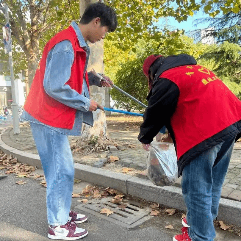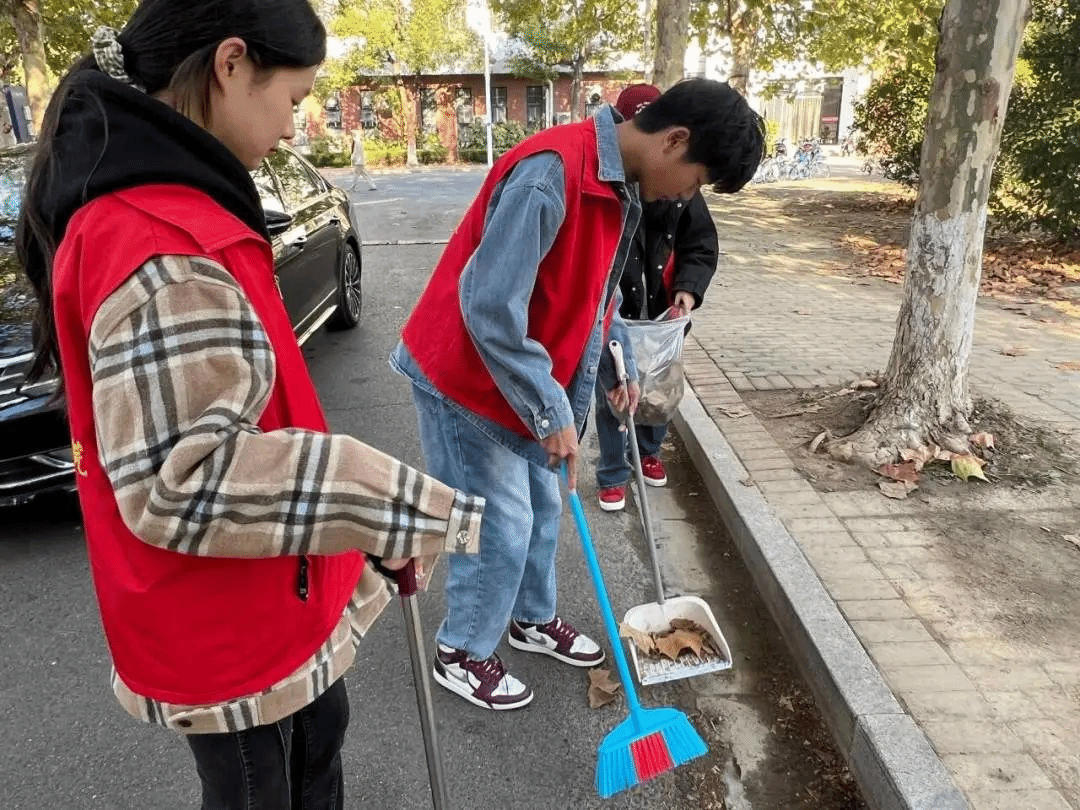 下午2点,同学们在老员工活动中心集合完毕,分成四组,由各小组组长分别带头前往南校区各大道进行落叶清扫,领入各自的区域进行清扫工作。初冬的落叶飘舞在瑟瑟的寒风中,大家穿着统一志愿者服装,手持扫帚和垃圾袋,齐心协力地清理着落叶和垃圾。阳光透过稀疏的树枝洒在辛勤劳动的志愿者们身上,构成了一幅美丽的画卷。大家互相协助,细致地清理着每一个角落的垃圾,同时清理了落叶,让校园重焕生机。