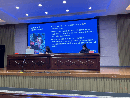 2023年11月24日晚上,公司邀请英国格林威治大学(University of Greenwich)工程与科学公司副经理、计算机和数学科学教授Noel-Ann Bradshaw在机械馆报告厅,作题为“开启数据的力量:未来职业成功的关键”的专题讲座。国合处副处长钱瑛琴、公司副经理陈青、部分教师、2021级中英合作班全体员工和辅导员到场聆听,讲座由徐彤彤主持。