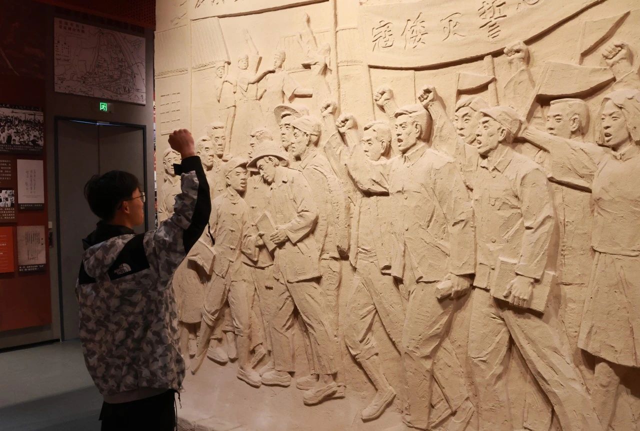 步入革命陈列馆,映入眼帘的是那面巨大的战士墙雕,它以其雄伟的姿态展示着革命者们的英勇形象。这座墙雕不仅是艺术的杰作,更是一段历史的缩影,每一道刻痕都承载着岁月的沉淀和历史的厚重。一面鲜艳的红旗随风飘扬,象征着无数先烈们的信仰和追求。它的红色不仅是热血的象征,更是希望的象征,激励着一代又一代人为了理想而不懈奋斗。