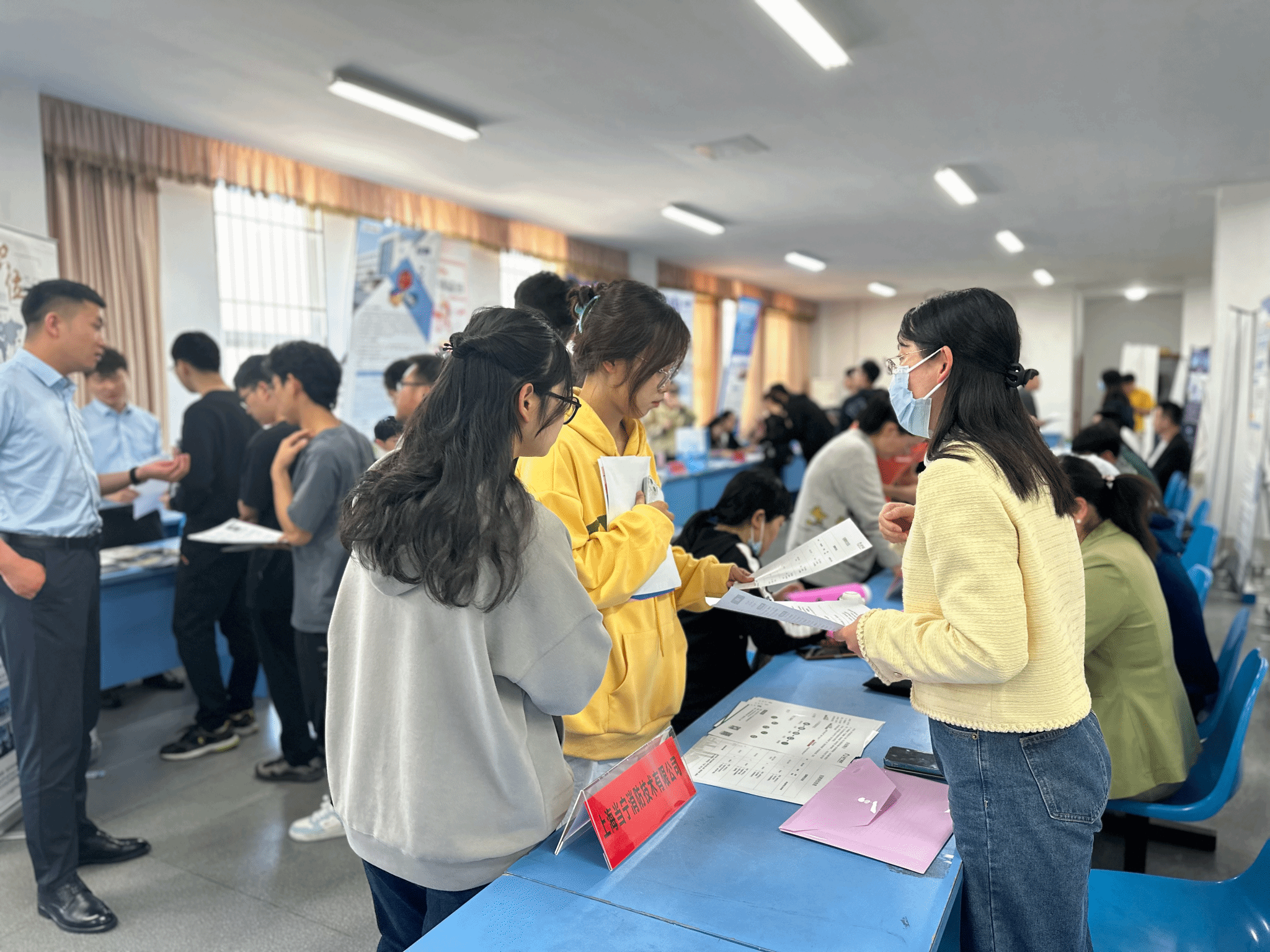 各企业从公司文化、发展状况、福利待遇、个人未来职业发展等方面做了具体介绍,毕业生现场向企业投递简历,现场气氛十分热烈。一百余名毕业生与企业达成了初步就业意向。江苏苏盐阀门机械有限公司王主任表示,本次招聘活动的应聘员工以机械类专业为主,与公司的招聘岗位匹配度很高,来应聘的毕业生生源质量较高,后期会联系员工面试,尽快确定录用名单。