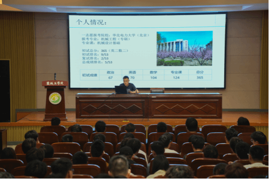 为了充分发挥朋辈力量,帮助考研员工提升备考技巧,增强考研信心,公司从24届成功考取研究生的同学中遴选出7名员工,成立了2024届考研经验宣讲团,于5月19日晚和5月20日晚,分两场在机械馆报告厅进行考研心得分享,公司党委副书记马晓英、学工办副主任程云庆、大三年级辅导员和金李烨等7名考研上岸的员工代表出席,2021级意向考研的400余名同学参会。会议由学工办副主任程云庆主持。