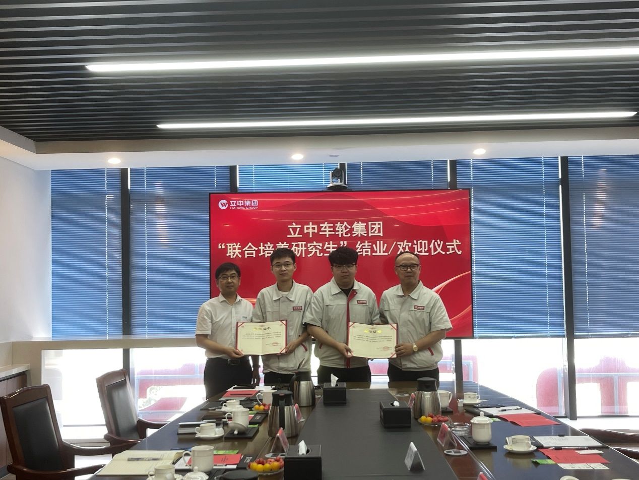 立中集团管理委员会主席臧立根介绍了企业的发展历程和社会责任,高度评价了公司公司产品质量和产学研工作,接得住、能落地、见成效,并表示将继续深化校企合作,扩大联合培养研究生的规模,助力盐工学子更好地服务地方经济发展。立中车轮集团副总裁叶珍表示,联合培养研究生的课题研究接地气、有深度,切实解决了企业发展的技术难题;与公司联合开发的自动化仿真系统,提升了车轮开发效率60%以上,取得了显著的经济效益。随后,崔刚为专业学位研究生校外实践指导老师颁发了聘书,立中车轮集团副总裁叶珍和人力行政总监孙杰武为今年结业的研究生颁发了荣誉证书。