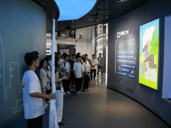 在7月5日上午,实践队到达了长三角一体化产业发展基地新能源科创园。盐城大丰开发区的相关负责人热情的带着同学们了解了园区的优越地理位置、宏伟的发展规模以及入驻的各类前沿机构。了解了园区的发展目标和长远定位,为同学们揭示了新能源产业蓬勃发展的蓝图,通过参观学习,同学们对新能源产业的发展需求及发展模式有了进一步的了解。