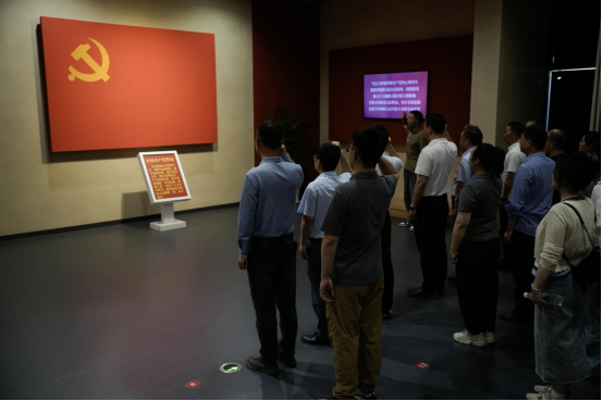 随后,全体党员在纪念馆宣誓厅举行了庄严的重温入党誓词仪式。一句句铿锵有力的誓言表达了大家对党的忠诚和坚定信念,也激励着每一位党员要时刻牢记党员身份,继承和发扬新四军的光荣传统和优良作风,在学习和工作中发挥先锋模范作用,为党和人民的事业不懈奋斗。
