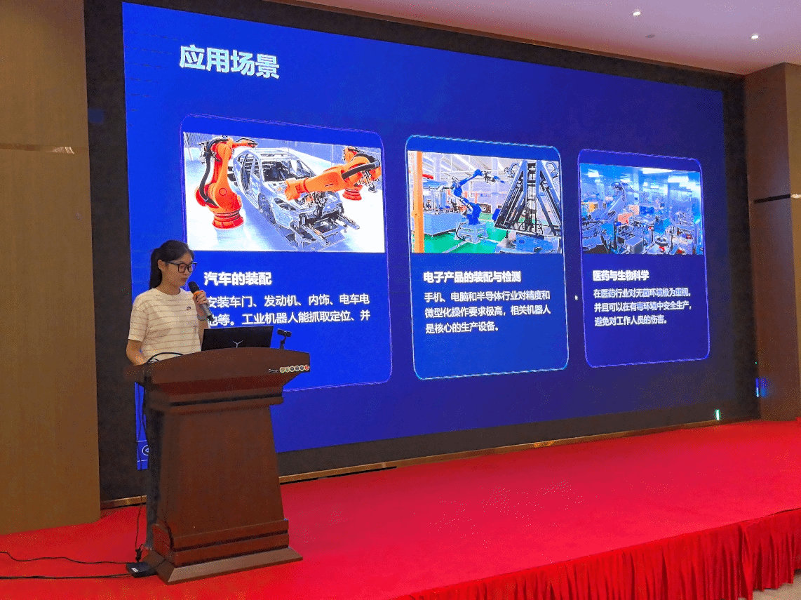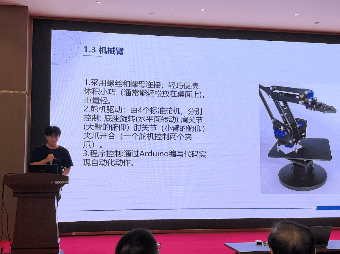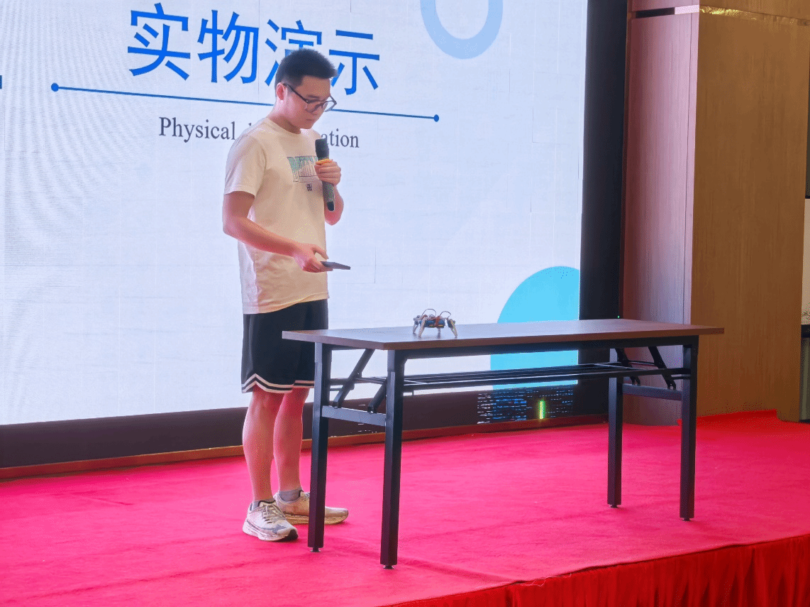 在结业汇报环节,盐粒子队、猛攻队、希望队、团结队等8支队伍依次登台,通过PPT汇报和项目路演的形式,全面展示了在暑期公司期间取得的学习与研究成果。围绕“AI机器人与智能系统”的主题,项目涵盖了智能机器人控制、工业物联网、机器视觉、数字孪生等前沿方向。学员们将理论知识与实践深度结合,其作品的创新性、完整性和应用潜力赢得了现场观众的阵阵掌声。