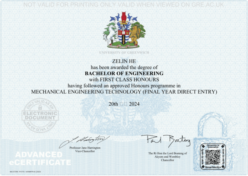 2020级员工何泽霖于2024年获格林威治大学一等荣誉学士学位